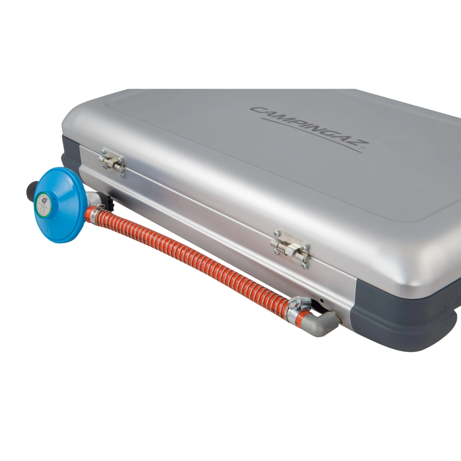 Designed for campers looking for a 2-hob stove that’s powerful, protective and compact.This stove works with a CV 470 cartridge. It has a protective lid and 2 enamel saucepan stands with built-in windshields on the burners.