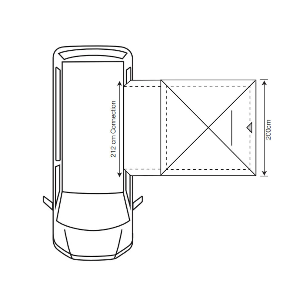 This bestselling lightweight pole-and-sleeve driveaway awning functions as a compact multi-purpose utility tent, which can be fixed alongside a campervan or motorhome and carries freestanding capabilities. A perfect addition to any touring arrangement, granting an indispensable extension of usable space, making it perfect for use as a dining, cooking, relaxation, storage, pets, toilet or shower area. Now available in 2 ergonomic cowl sizes to fit a vehicle rail height of up to 255cm, the Outhouse Handi is very simple to pitch using just 2 robust fibreglass poles. We have introduced crystal clear window panels and mesh ventilation points on both sides of the awning to maintain an airy internal space, and a separate peg-down groundsheet giving the option to remove if desired. Exterior zip-down storm covers help to ensure maximum protection against the elements throughout adverse weather conditions, whist roof ventilation points ensure airflow is maintained to reduce condensation. A stylish front canopy can be created using optional canopy poles (available separately), and the internal area can be illuminated in the evening using our optional Lumi-Link lighting system which velcros simply into place. Fixing Height 210cm – 255cm (Mid) • 120HDE high density all-weather lightweight fabric