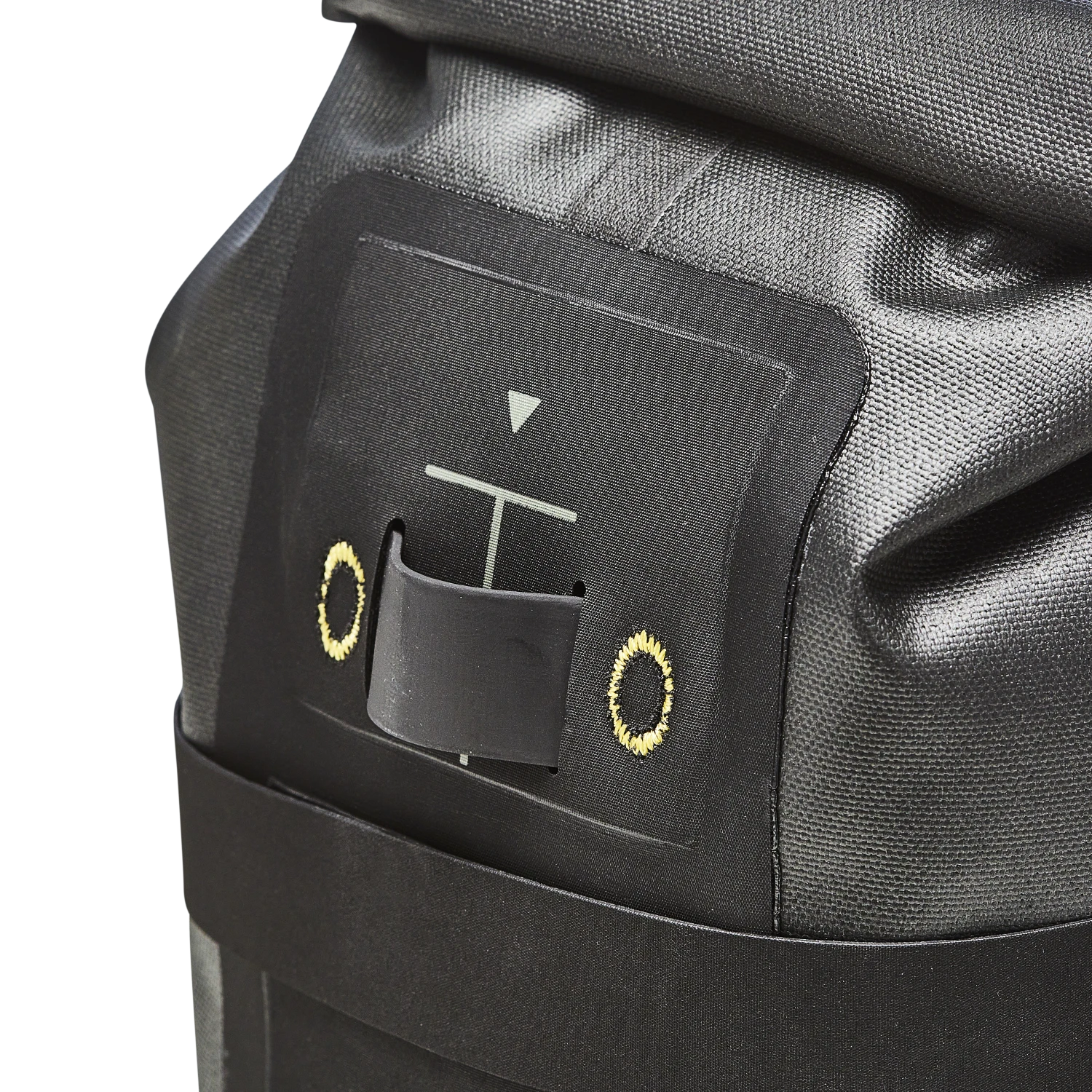 Watertight thanks to the roll top system. Rated IPX6 for waterproofing. This Protection Factor means that the product withstands strong jets of water (100L/min) from all directions.