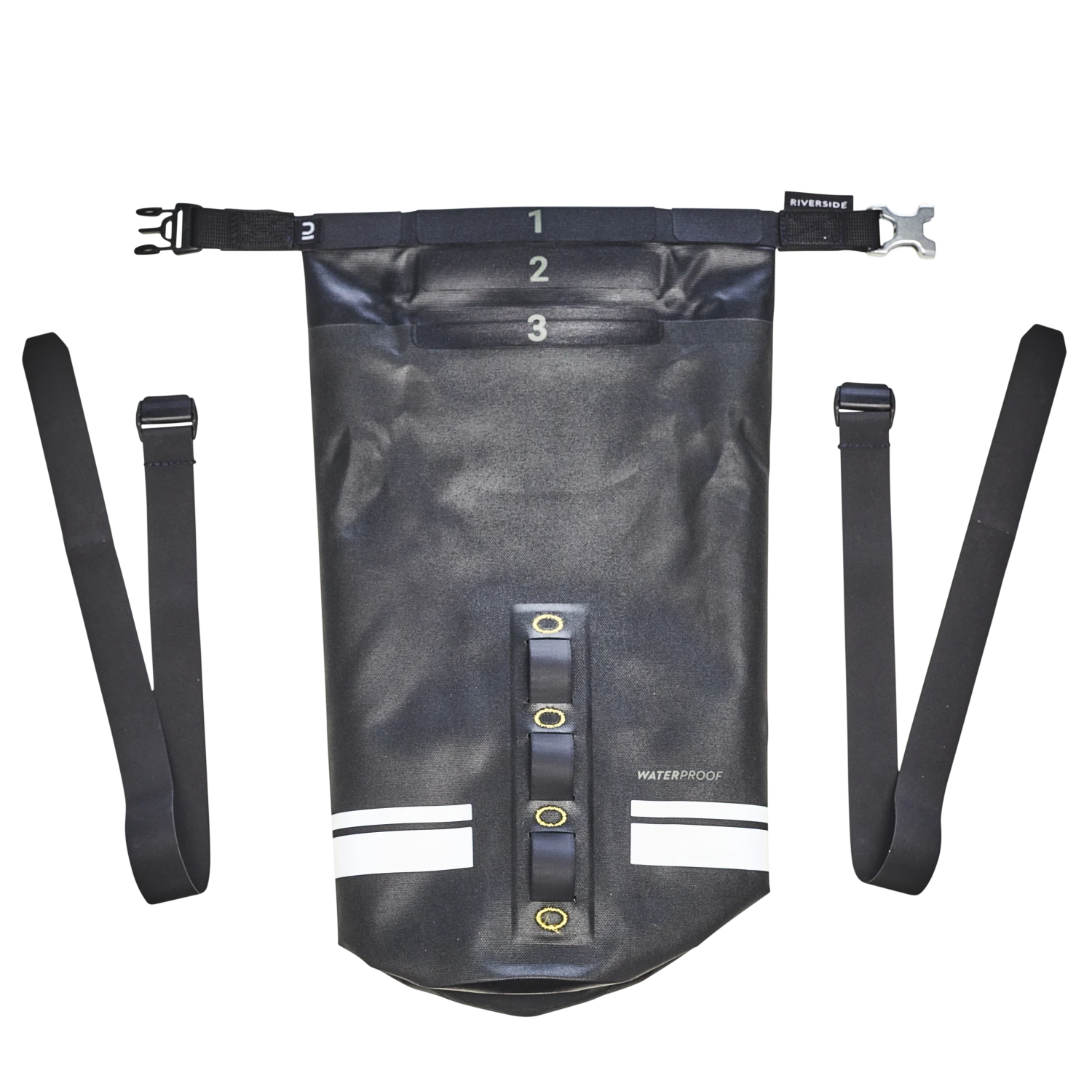 Everything is held in place by the 2 durable hypalon straps and the exclusive strap loop at the back, which is compatible with the Riverside cargo cage connector.