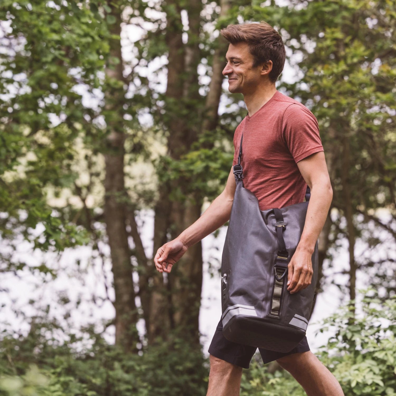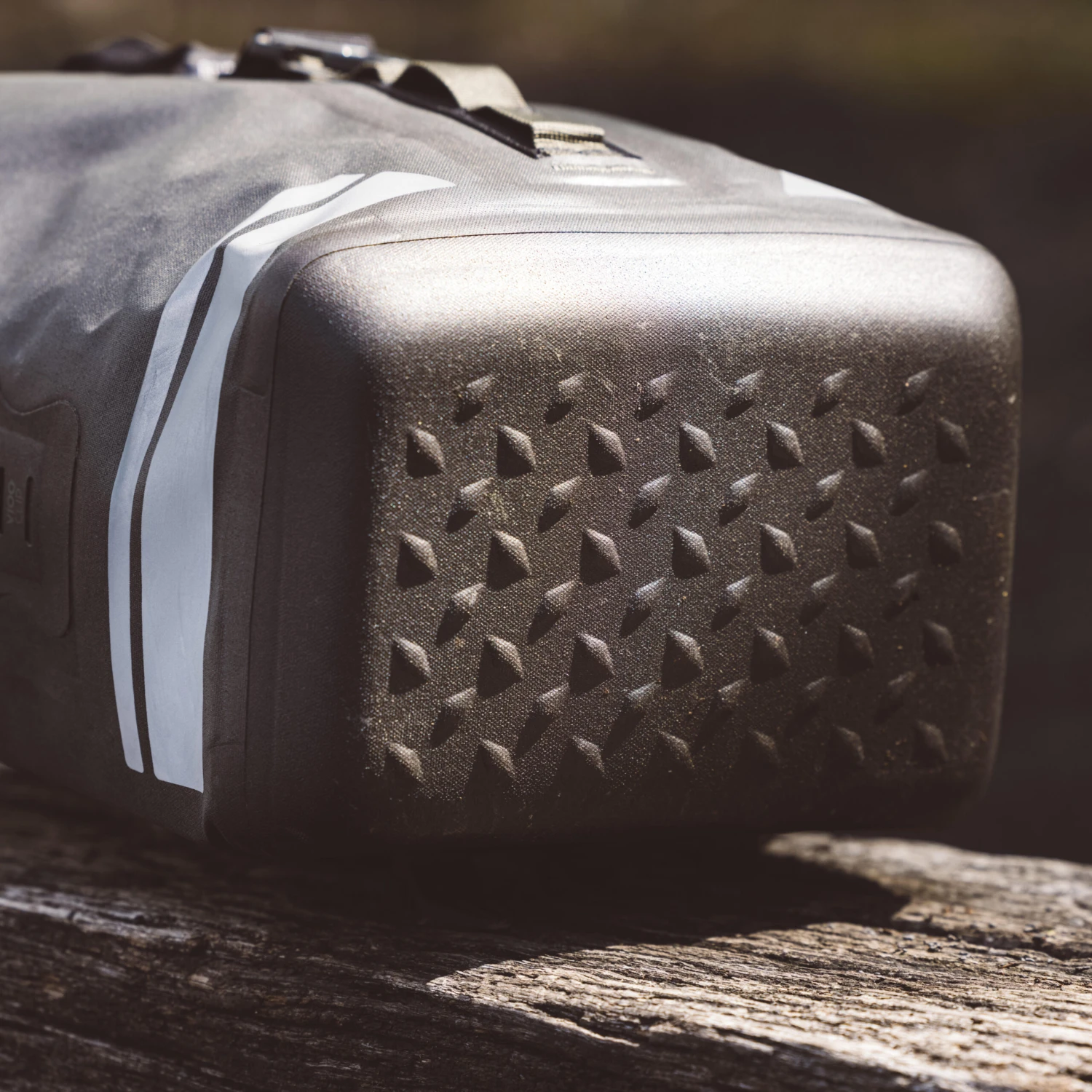 Watertight thanks to the roll top system. Rated IPX6 for waterproofing.This Ingress Protection Rating means that the product withstands a high-pressure water stream (100 L/min) from any angle.